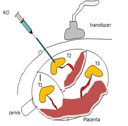 It’s usually done per abdomen. First, an ultrasound is done to know the type of multiple pregnancy. We look for structural abnormality in any of the babies in your womb. If the initial screening looks ok, we select the baby that is far away from the mouth of uterus and is easily accessible. With the help of ultrasound, a local anaesthetic is injected into the underlying skin so that you don’t feel any pain. We introduce the needle from the tummy into the selected fetus’s heart. We inject the medicine like KCL into the heart. The heart beat stops. We observe for a little while and then the needle is withdrawn.